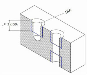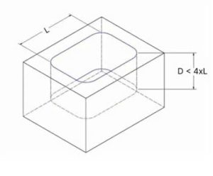 Một cách đơn giản để tránh tất cả những điều này là thiết kế các lỗ khoang có độ sâu tối đa gấp bốn lần chiều rộng của chúng. Ví dụ, một lỗ khoang rộng 10 mm không được sâu hơn 40 mm. Lưu ý rằng bất kỳ lỗ khoang nào sâu hơn sáu lần đường kính của dụng cụ cắt đều được coi là sâu.
