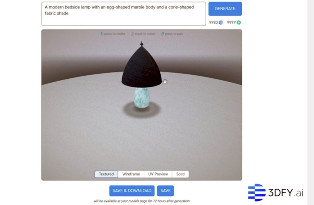 Công nghệ của 3DFY sẽ tạo ra hình ảnh 3D chất lượng cao từ một câu hướng dẫn duy nhất.