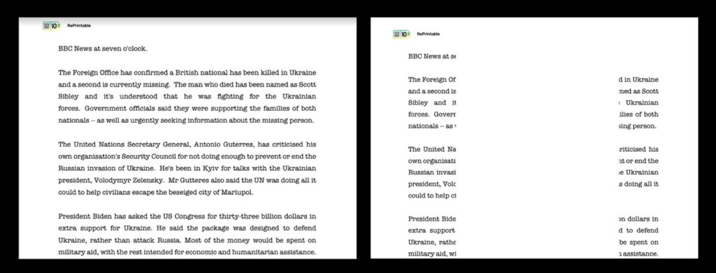 Trước và sau: Với mục đích trình diễn, máy khử in chỉ loại bỏ phần giữa của trang