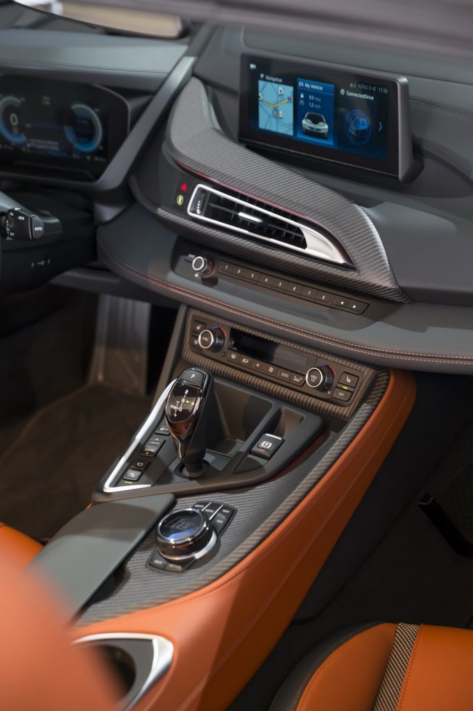 Chiếc mui của i8 Roadster có thể đóng/mở trong 15 giây ngay cả khi xe đang chạy ở tốc độ 50 km/h. BMW cho biết hệ thống treo của phiên bản Roadster đã được tinh chỉnh một chút để phù hợp với kết cấu mui trần. Ngoài ra, cả hai phiên bản đều có thiết kế vành xe mới với các nan hình cánh hoa.
