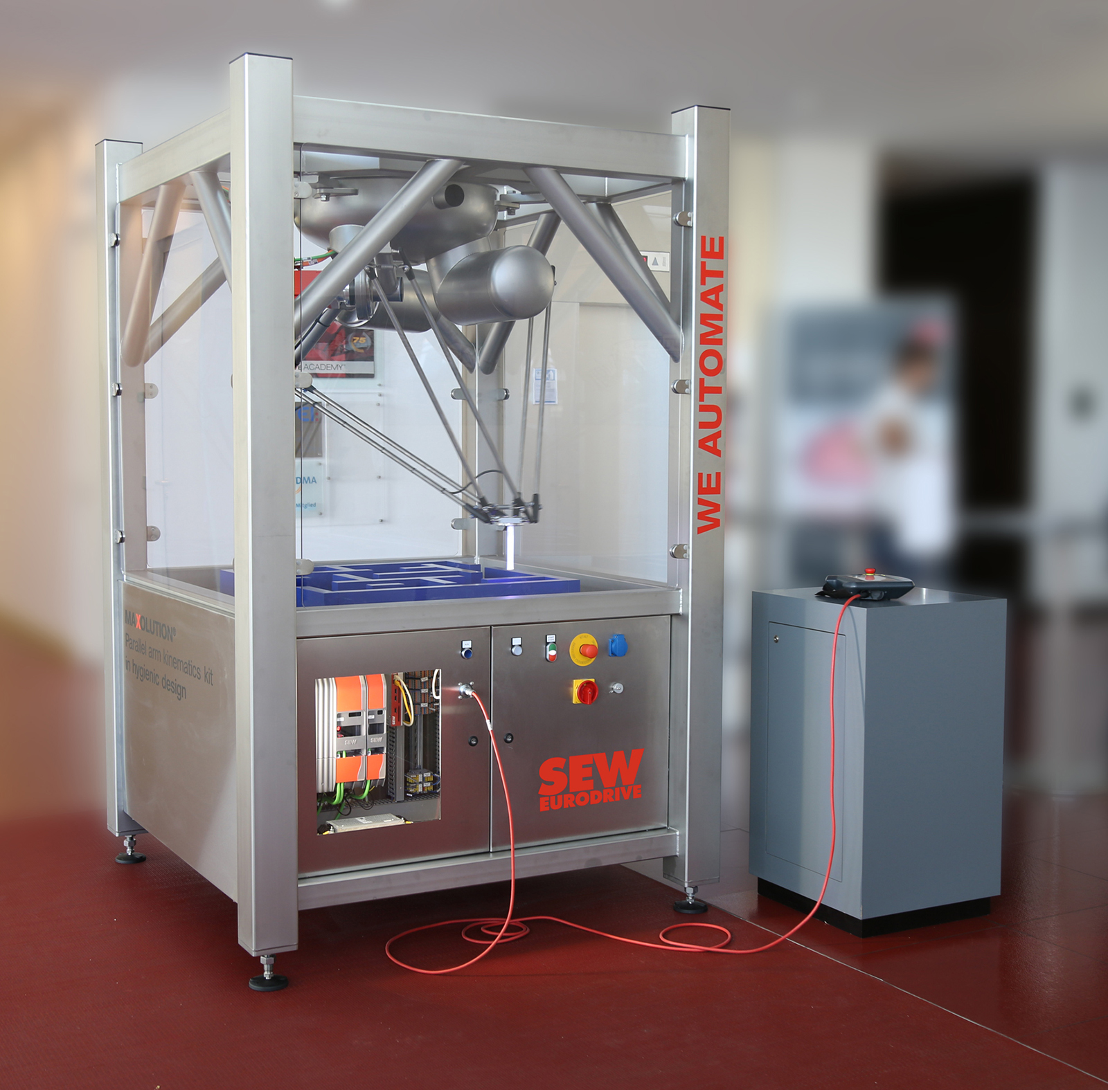 Bộ động lực cánh tay robot song song MAXOLUTION được phát triển bởi SEW-EURODRIVE có ba bộ thiết bị riêng biệt, gồm bộ điều khiển, bộ trục robot và bộ cơ khí robot. Tất cả ba bộ có thể được tự do tích hợp với nhau. Trong bộ điều khiển sẽ có một màn hình hiển thị, phần mềm điều khiển và một mô đun điều khiển, có cấu hình tương tự như dòng mô đun MOVI-C CONTROLLER UHX85A-R của SEW-EURODRIVE. Trong khi đó, bộ trục robot bao gồm các mô-đun trục cùng với các động cơ servo tương thích. Cuối cùng, bộ cơ học robot gồm một số hộp giảm tốc servo, tương thích với tất cả các bộ động lực robot thông thường.