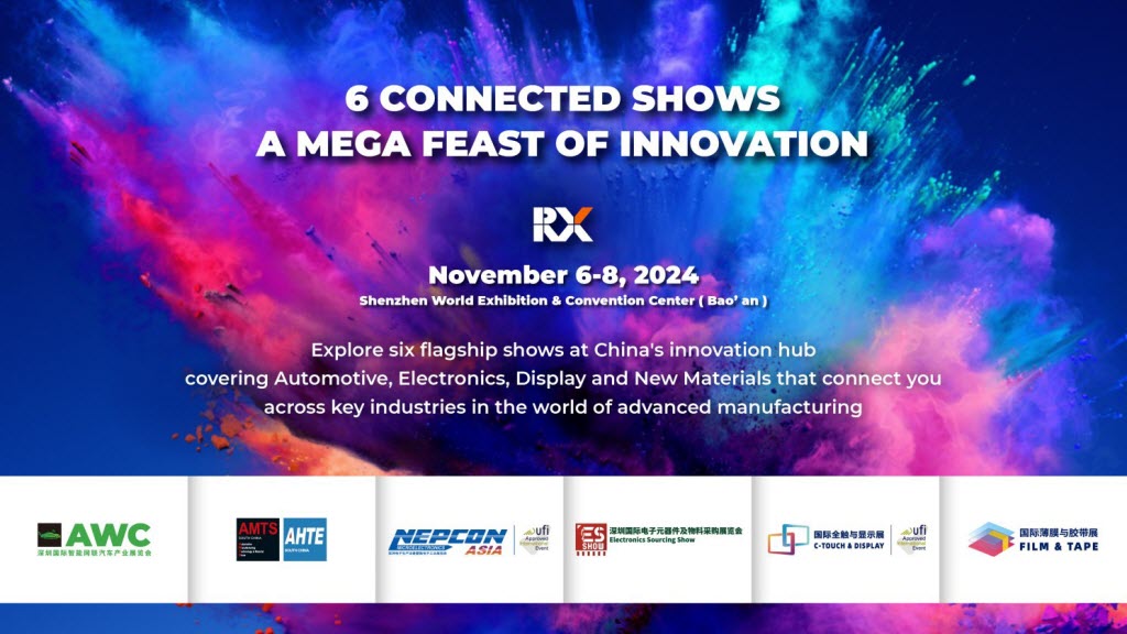 C-Touch & Display Shenzhen 2024 sẽ được tổ chức đồng thời với FILM & TAPE EXPO, Automotive World China, AMTS & AHTE South China, NEPCON Asia và Electronics Sourcing Show tại trung tâm đổi mới của Trung Quốc, với hơn 160.000 m2 và 3.500 công ty trưng bày và thương hiệu sẽ có mặt. Sáu sự kiện thương mại bao gồm các lĩnh vực ô tô, điện tử, màn hình và vật liệu mới sẽ kết nối các nhà sản xuất và khách mua hàng từ khắp các ngành công nghiệp sản xuất tiên tiến.