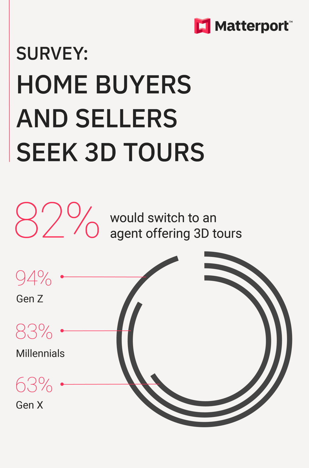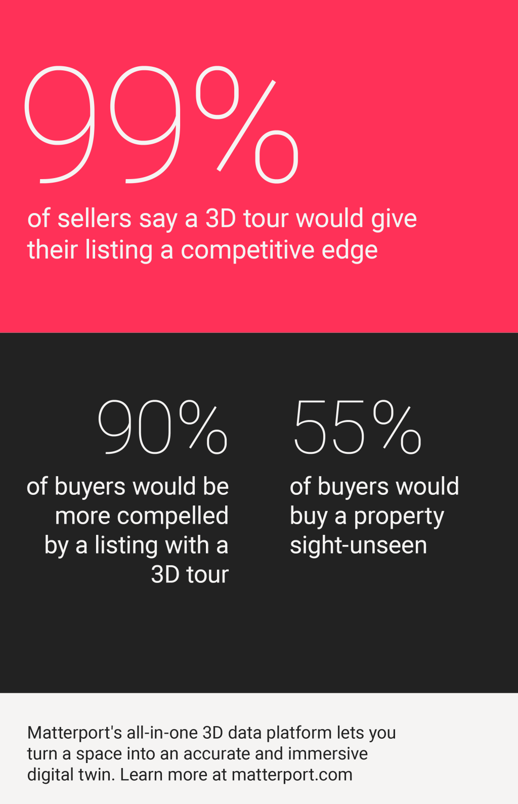 Matterport đã khảo sát ý kiến của 1.000 người mua và 1.000 người bán bất động sản ở Hoa Kỳ và nhận thấy rằng họ không còn hài lòng với những bức ảnh 2D mà họ mong muốn lựa chọn những trải nghiệm phong phú hơn. Chúng tôi đã so sánh dữ liệu của mình với Báo cáo Xu hướng của các thế hệ Người mua và Người bán nhà năm 2019 của Hiệp hội Bất động sản Quốc gia Hoa Kỳ (NAR) và tìm thấy một số thông tin thú vị về thị trường bất động sản trong tương lai.