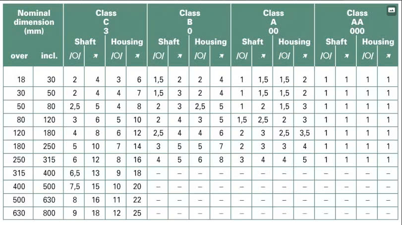 Bảng 2 chứa các giá trị tối đa được khuyến nghị cho các ổ trục và ổ đỡ dựa trên cấp độ chính xác của ổ trục.