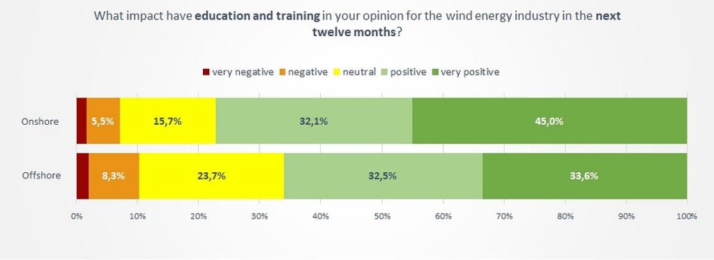Trong khi tình hình của ngành công nghiệp gió nhìn chung được nhìn nhận theo hướng tích cực, các bên liên quan trên thị trường đang bày tỏ một số lo ngại. WEtix này một lần nữa bao gồm một câu hỏi liên quan đến tầm quan trọng của giáo dục và đào tạo cho ngành công nghiệp gió. Bản thân các kết quả đã nói lên điều đó: WEtix này một lần nữa phản ánh mối quan tâm rộng rãi về sự sẵn có của lao động có kỹ năng. Hơn 66% số người được hỏi cho rằng tầm quan trọng cao hoặc rất cao đối với sự sẵn có của các chương trình giáo dục và đào tạo về năng lượng gió.