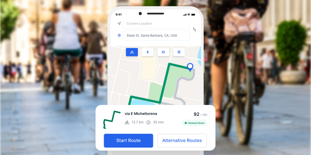 Tính năng Tuyến đường sạch nhất của BreezoMeter gợi ý tuyến đường ít ô nhiễm nhất cho người đi bộ, đi xe đạp và lái xe ô tô