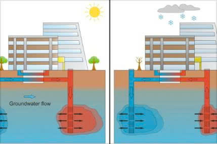 Gần 1/5 lượng khí thải nhà kính trên khắp thế giới là do sưởi ấm và làm mát. Nhu cầu làm mát nói riêng sẽ tăng mạnh trong tương lai. Tuy nhiên, hiện tại chỉ một phần nhỏ năng lượng cần thiết cho việc này đến từ các nguồn năng lượng tái tạo. Các nhà nghiên cứu tại viện KIT và các đối tác đã tiến hành một nghiên cứu để đánh giá tính khả thi về mặt kinh tế của việc lưu trữ nước ngầm. Phương pháp này bao gồm việc lưu trữ nước lạnh hoặc nước ấm trong các tầng ngậm nước (1) tự nhiên (trong lòng đất), và khai thác dòng nước này vào những thời điểm cần năng lượng nhiệt độ tương ứng.