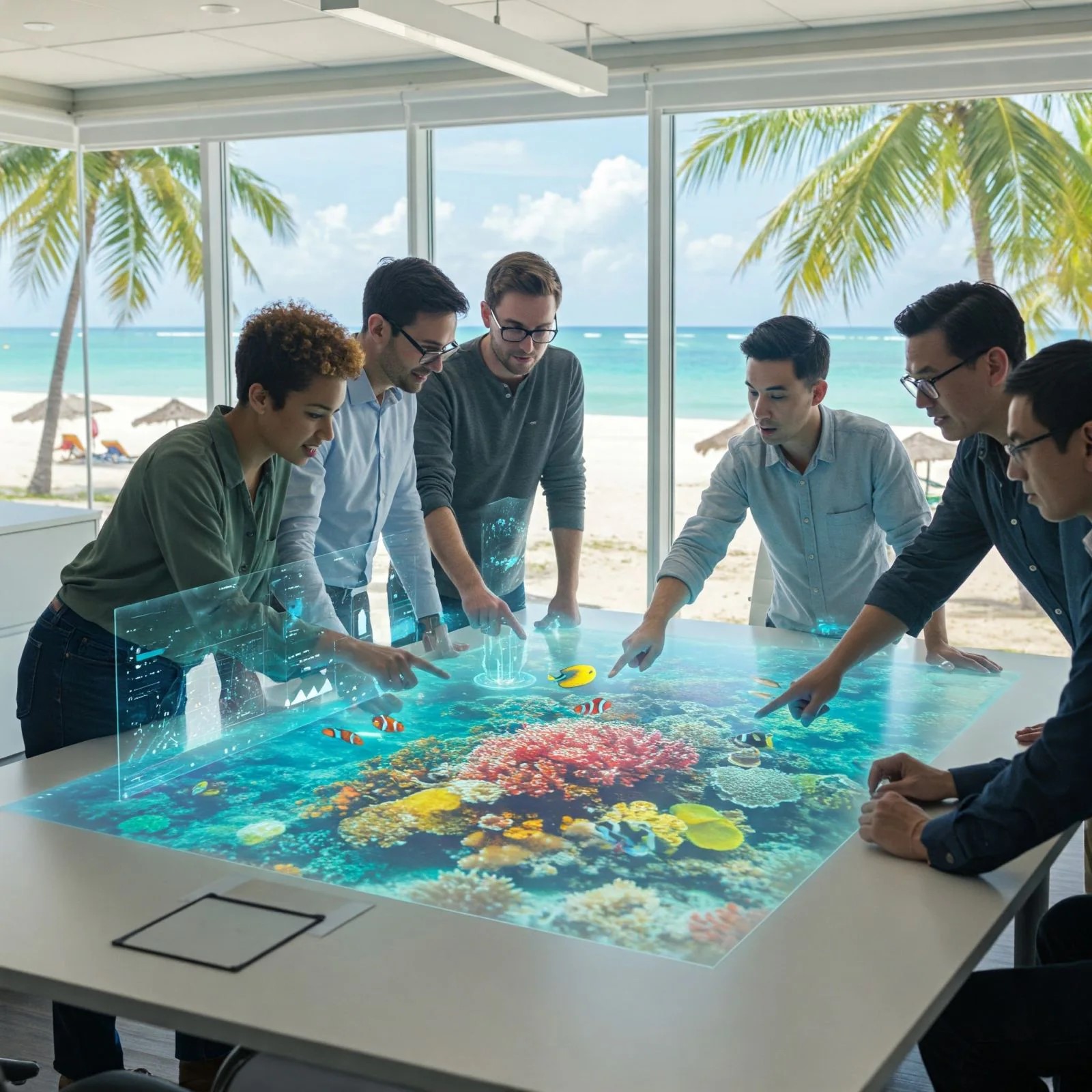 Tập đoàn Siemens: chuyển đổi dữ liệu khoa học phức tạp thành bản sao 3D dễ tiếp cận, trực quan và tương tác của một rạn san hô thực, thông qua bản song sinh kỹ thuật số của rạn san hô. Ứng dụng industrial metaverse này sử dụng và trực quan hóa các tập dữ liệu khoa học lớn trên các thiết bị tiêu chuẩn mà không cần phần cứng cao cấp. Công nghệ này độc lập với ứng dụng và được sử dụng cho nhiều ứng dụng công nghiệp khác nhau, như: mô phỏng hạt và dòng chảy trong ngành công nghiệp chế biến.