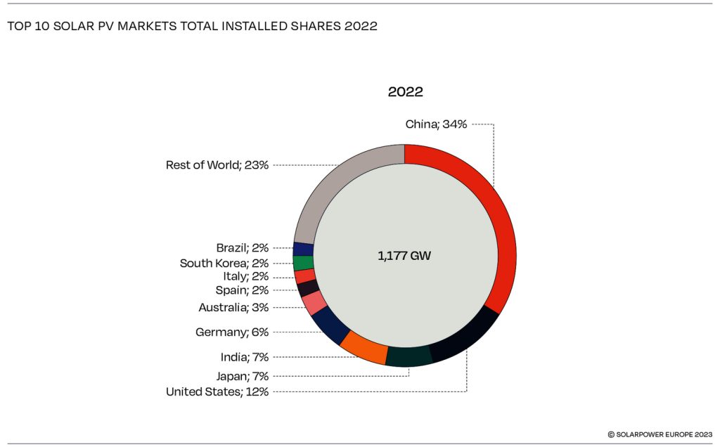 Với hơn 1,2 TW năng lượng mặt trời hiện được lắp đặt trên toàn thế giới, năng lượng mặt trời sẽ tạo ra 1.612 TWh điện năng trên toàn cầu trong suốt năm 2023 – tương đương với 57% tổng nhu cầu điện của Liên minh Châu Âu.