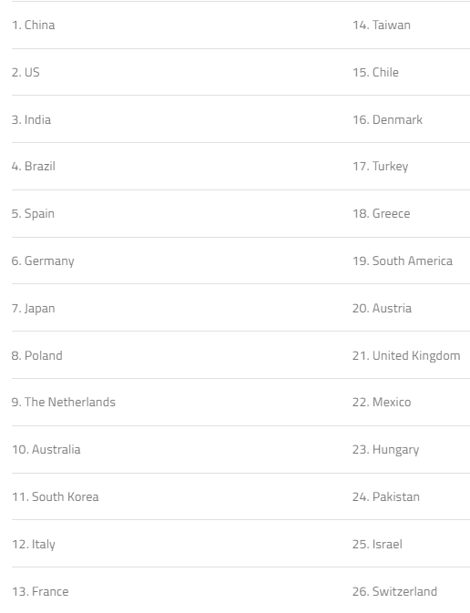 – Bảng dưới đây cho thấy 26 quốc gia đã bổ sung ít nhất 1 GW năng lượng mặt trời vào năm 2022. Các quốc gia được xếp hạng theo lượng công suất năng lượng mặt trời mà họ đã lắp đặt. Trong báo cáo “Triển vọng thị trường toàn cầu”, bạn có thể tìm thấy một chương dành riêng cho từng quốc gia này.