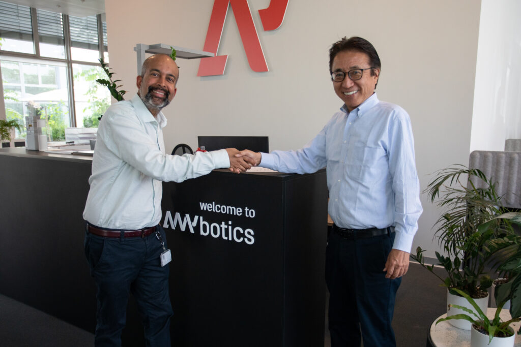 Ông Kiyoshi Ikeda (trưởng phòng kinh doanh của công ty Nihon Binary) và ông Satschin Bansal (phó chủ tịch công ty ANYbotics) tại trụ sở công ty ANYbotics ở thành phố Zurich, Thụy Sĩ.