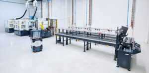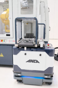 Việc chuyển giao các tấm pallet từ robot AutoFetch sang máy mài