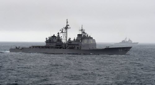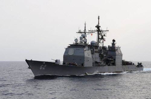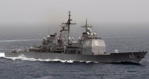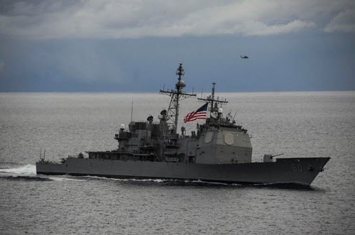 USS-Gettysburg (CG-64) thuộc Nhóm tác chiến tàu sân bay số 10. Việc xây dựng lá chắn tên lửa từ các tàu Aegis mang lại cho Mỹ khả năng phòng thủ tên lửa linh hoạt trên khắp thế giới.