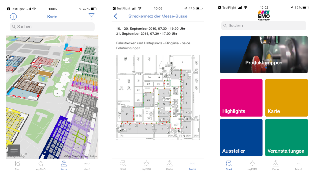 EMO Hannover 2019 đã thiết lập một ứng dụng hoàn toàn mới với những chức năng đặc biệt. Ứng dụng này là người bạn đồng hành cùng công ty trưng bày và khách thăm tại hội chợ, giúp người dùng lên kế hoạch và giám sát hiệu quả của nó.