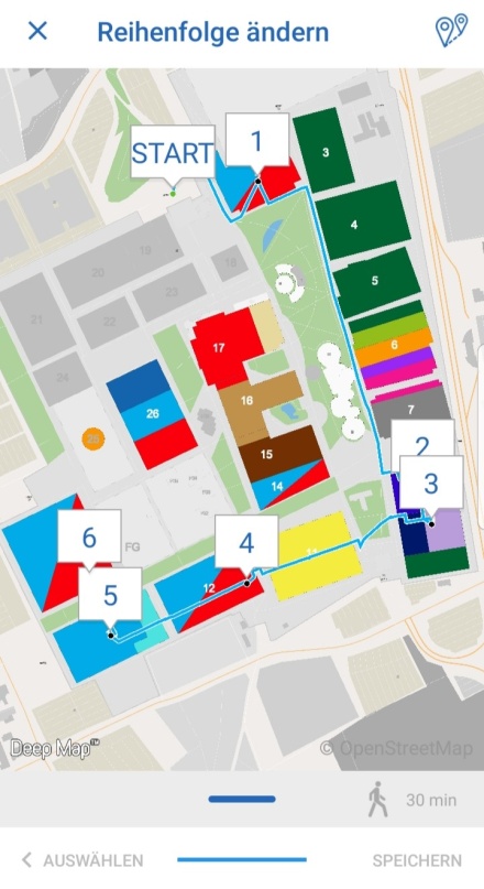 Mặt khác, ứng dụng còn là một người bạn hỗ trợ lên kế hoạch tại hội chợ. Kết hợp với danh sách vị trí của các công ty trưng bày hay từng danh mục sản phẩm, ứng dụng sẽ đề xuất đường đi bộ ngắn nhất, bao gồm cả thời gian cần thiết cho chúng ta. Bản đồ sảnh trưng bày với chức năng điều hướng sẽ giúp người dùng định vị chính xác vị trí của họ và đề xuất các lối ra, lối vào gần nhất cũng như vị trí của nhà vệ sinh và nhà hàng. Sau khi đăng nhập vào trang web của EMO Hannover, danh sách tham quan và kế hoạch đi đến các gian hàng của bạn sẽ được tự động đồng bộ hóa với ứng dụng.