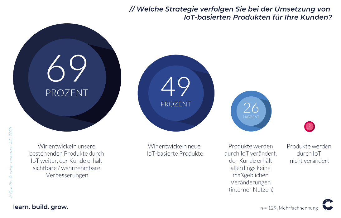 Công ty Crisp Research AG đã hợp tác với Lufthansa Industry Solutions để thực hiện một nghiên cứu khác, khảo sát 129 nhà lãnh đạo từ các lĩnh vực khác nhau. Vấn đề đặt ra là so với việc tìm kiếm các nhà cung cấp dịch vụ IoT bên ngoài thì tự phát triển chúng có tốt hơn không. Hai mươi phần trăm trong số họ tin rằng họ cần sự hỗ trợ từ các nhà cung cấp bên ngoài. Chỉ có bốn phần trăm nghĩ rằng họ nên tự phát triển như những nhà đổi mới trong tương lai. Tuy nhiên, phần lớn đều thích kết hợp cả hai hướng, để công ty được phát triển một cách tốt nhất.