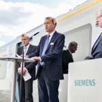 Ông Andy Pitt, Giám đốc điều hành công ty Cross London Trains (giữa) cùng ngài Patrick McLoughlin, Bộ trưởng Bộ Giao thông vận tải cũng tham dự buổi lễ của Siemens AG