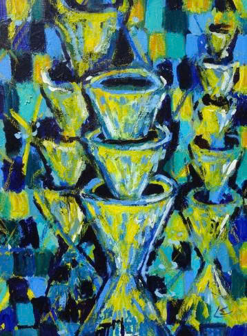 Hình ảnh hiệu ứng Floquet trong vật liệu graphene theo hình dung của nghệ sĩ Lina Segerer. Bức ảnh mang tên ‘Dirac Cones I’, thể hiện cấu trúc điện tử ba chiều của graphene và các bản sao của chúng được tạo ra bởi ánh sáng