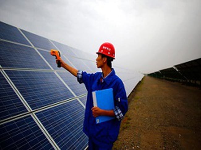 Kiểm tra chất lượng tại một điểm thu điện năng lượng mặt trời ở tỉnh Cam Túc (Trung Quốc)