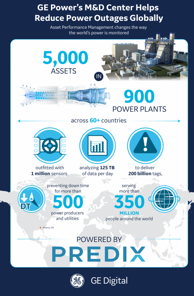 Hai thập kỷ trước, GE bắt đầu theo dõi các nhà máy điện từ xa và đã thu được một kho dữ liệu vận hành độc đáo. Máy phát điện do GE sản xuất đang tạo ra 1/3 sản lượng điện toàn cầu, mang lại cho GE thông tin chuyên sâu, chi tiết về cách lắp đặt và vận hành của các tua-bin và máy phát điện. Kiến thức nền này cho phép các kỹ sự tại trung tâm M&D có thể theo dõi cả những tua-bin của các hãng sản xuất khác như Alstom, Mitsubishi hay Siemens.