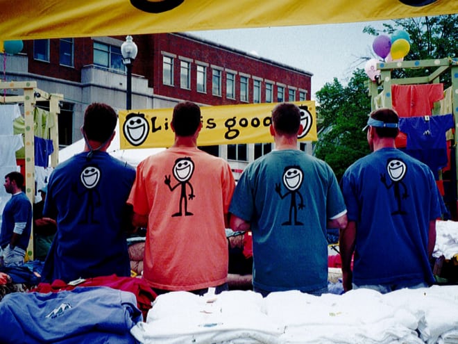 Một người than dự bình luận: “Cậu chàng này có cuộc sống thật thật vô ưu”. Hai anh em nhanh chóng nghĩ ra câu “Life is Good” (cuộc sống tươi đẹp), in 48 chiếc áo thun và bán tại một hội chợ đường phố ở Cambridge, Massachusetts vào năm 1994.