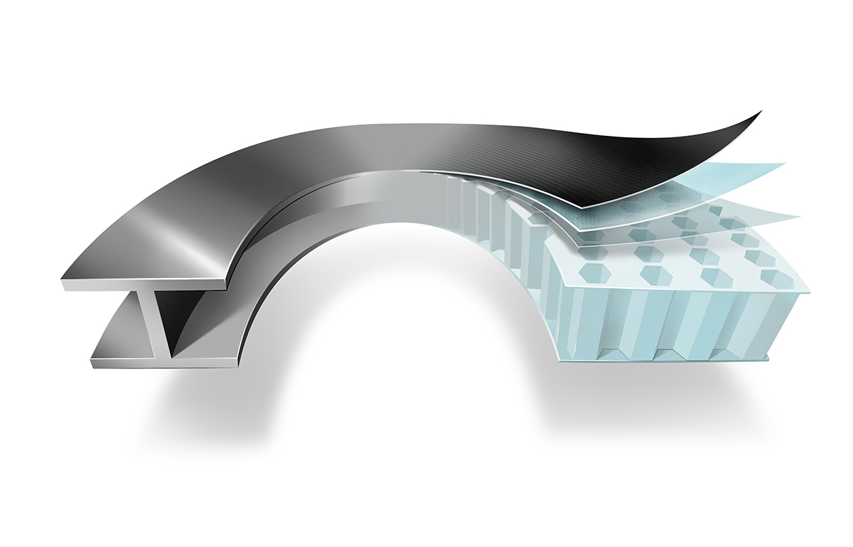 *Chú thích: Cấu trúc sandwich là một kết cấu đặc biệt gồm 03 lớp chính (01 lớp lõi và 02 lớp bề mặt). Thông thường, lớp lõi được làm bằng vật liệu nhẹ, độ cứng thấp (lõi xốp, lõi tổ ong), trong khi đó, lớp bề mặt được làm từ vật liệu có độ cứng cao (vật liệu composite gia cố sợi carbon, sợi thủy tinh, nhôm độ cứng cao,…).
