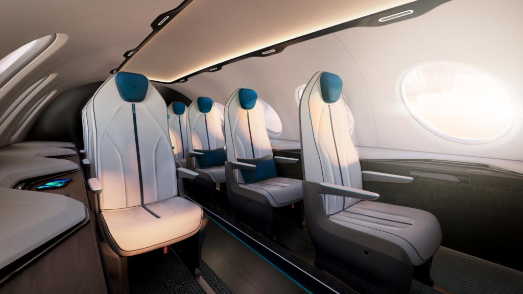 Nội thất bên trong máy bay Alice, có 9 chỗ ngồi và có thể bay được trong một tiếng
