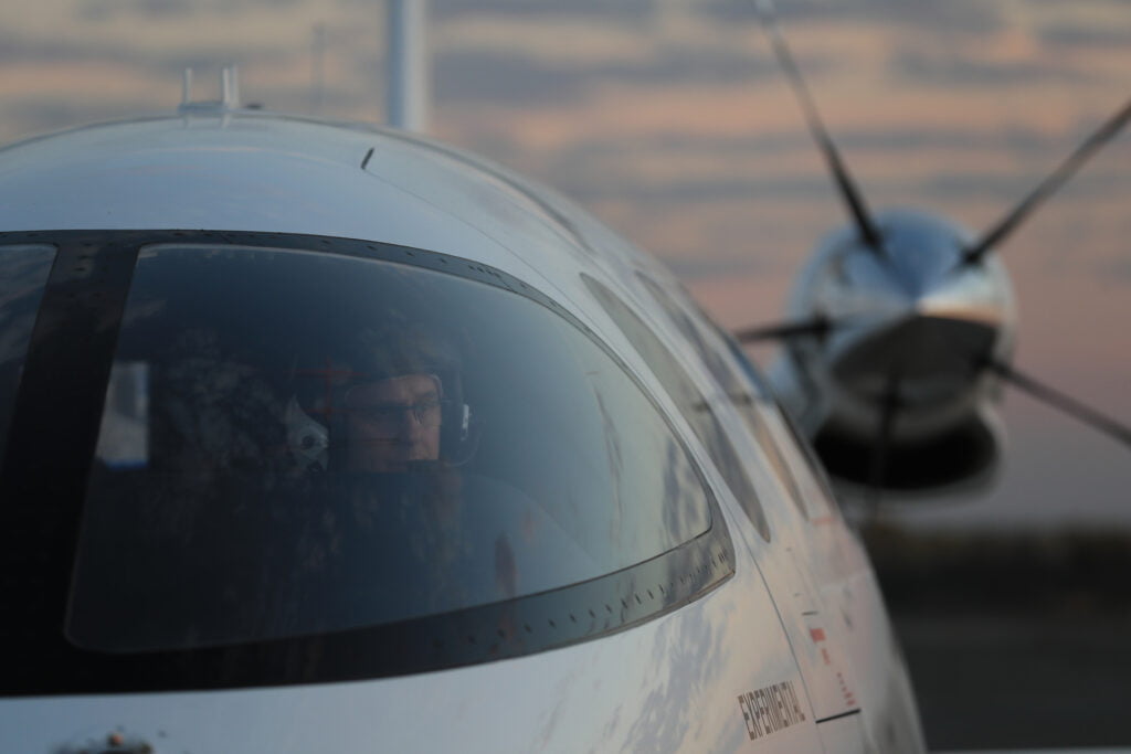 Một bức ảnh chụp máy bay Alice đang trong quá trình thử nghiệm. Không giống như các máy bay truyền thống, nó sẽ không để lại vệt tương phản trên bầu trời.