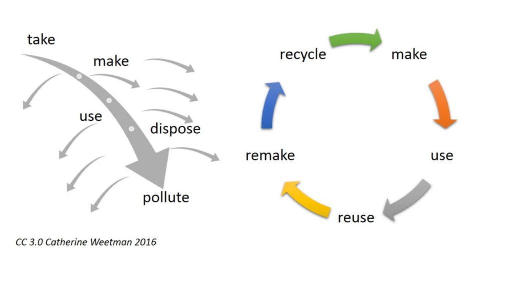 Nền kinh tế tuần hoàn toàn có nghĩa là gì? CHLB ĐỨC – Nền kinh tế tuần hoàn mô tả một hình trong đó các sản phẩm và các sản phẩm linh kiện của chúng được sử dụng càng lâu càng tốt, đồng thời các sản phẩm linh kiện có thể tái chế để sản xuất sản phẩm mới, tạo thành một tuần hoàn thành. Sơ đồ sau đây giải thích sự tương thích giữa hoàn thành nền kinh tế tuần và tuyến tính kinh tế nền tảng vẫn còn phổ biến cho đến nay.