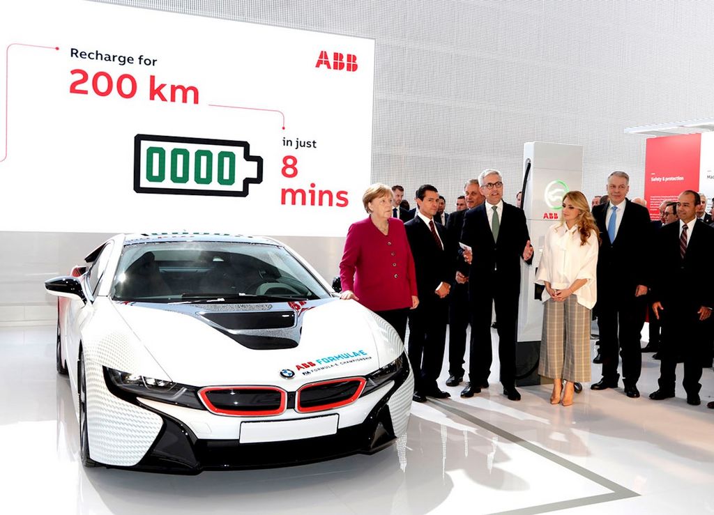 Thủ tướng CHLB Đức bà Angela Merkel và Tổng thống Mexico ông Enrique Peña Nieto vừa trải nghiệm trạm sạc EV mới nhất của ABB tại hội chợ Hanover Messe 2018.