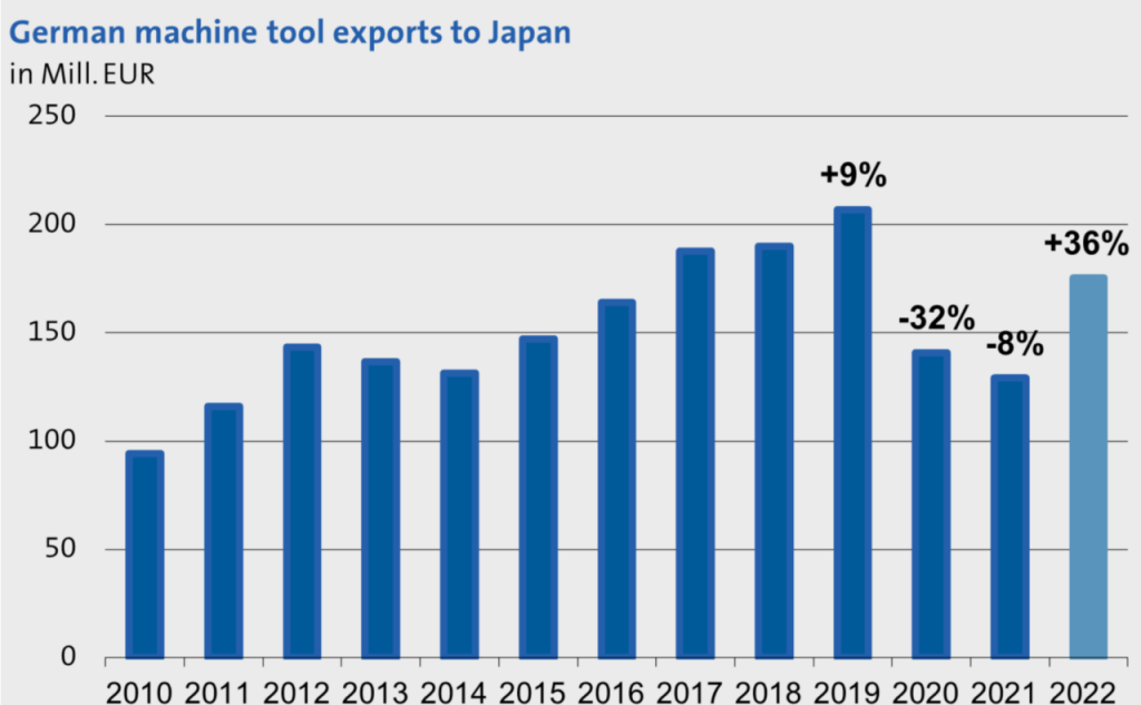 Năm 2022, ngành máy công cụ của CHLB Đức đã xuất khẩu máy móc (bao gồm cả phụ tùng và dịch vụ) trị giá hơn 175 triệu euro sang Nhật Bản. Điều này thể hiện mức tăng 36% về giá trị xuất khẩu so với cùng kỳ năm trước.
