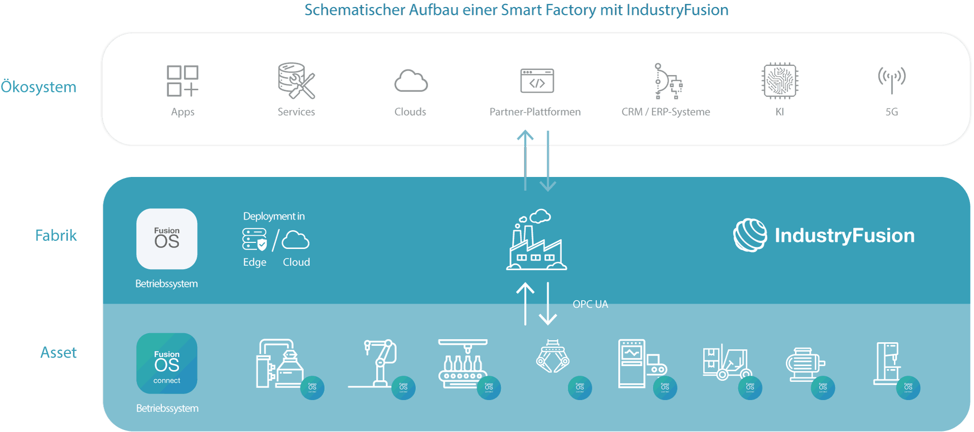Hiệp hội Industry Business Network 4.0 đang hợp tác với hơn 30 nhà sản xuất máy công nghiệp và đối tác phần mềm trong dự án nguồn mở có tên IndustryFusion. IndustryFusion là một phần mềm nguồn mở nhà máy thông minh đầu tiên, giúp kết nối máy móc, nhà máy và nền tảng đám mây trong tương lai mà không bị ràng buộc bởi những giải pháp độc quyền của các nhà sản xuất máy móc hoặc nhà cung cấp nền tảng cụ thể.