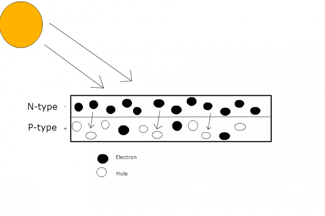 Khi chất bán dẫn silicon tiếp xúc với năng lượng, các electron tự do ở điện cực N sẽ di chuyển sang để lấp đầy các lỗ trống bên điện cực P. Sau đó, các electron từ điện cực N và điện cực P sẽ cùng nhau tạo ra điện trường. Các tế bào năng lượng mặt trời sẽ trở thành một diode, cho phép electron di chuyển từ điện cực P đến điện cực N, không cho phép di chuyển ngược lại.