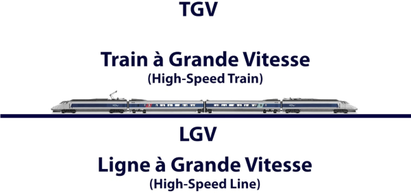 Trước hết, cần làm rõ hai khái niệm quan trọng: LGV và TGV. – LGV (viết tắt của Ligne à Grande Vitesse, có nghĩa là đường sắt tốc độ cao) là tên gọi của các tuyến đường sắt tốc độ cao tại Pháp – TGV (viết tắt của Train à Grande Vitesse, có nghĩa là tàu tốc độ cao) là loại tàu chạy trên những tuyến LGV