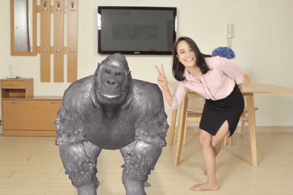 Khi hình ảnh 3D được tái hiện qua ứng dụng trên điện thoại hoặc máy tính bảng, người dùng thậm chí có thể bước vào chụp chung tấm ảnh với con vật đó. Ảnh: Nhân vật cung cấp.
