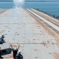Trong hình là hoạt động thử nghiệm hệ thống phóng máy bay điện từ mới của Hải quân Mỹ