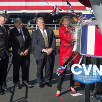 Bà Susan Ford đập một chai rượu Bồ Đào Nha thượng hạng vào mũi tàu