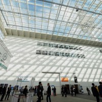 Mái nhà bằng kính tận dụng ánh sáng tự nhiên tại sảnh tổ chức Ngày hội việc làm