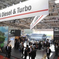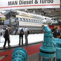 Gian hàng trưng bày của công ty MAN Diesel & Turbo với các động cơ tàu thủy kích thước thật thu hút đông đảo khách thăm (Ảnh: Stephan Wallocha)