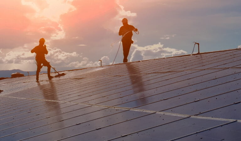 Cây lau nhà và xô là một trong những cách tiếp cận của nhiều công ty quản lý các trạm phát điện bằng pin năng lượng mặt trời. Và về cơ bản đó là những gì mà các nhóm công nhân trên khắp thế giới sử dụng, mặc dù cũng có một số cải tiến và trợ giúp của máy kéo, cần cẩu và các thiết bị khác.