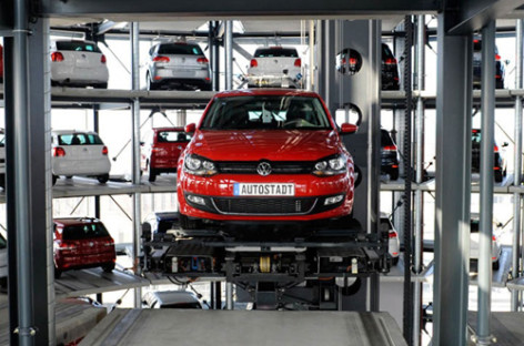 Bãi đỗ xe đặc biệt Car Tower trong công viên nhà máy của Volkswagen cao 20 tầng, với sức chứa 800 xe.