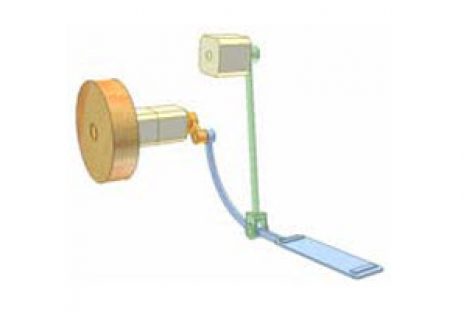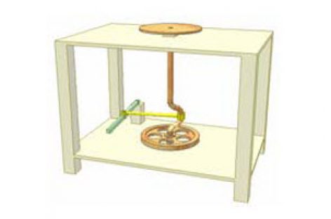 [Mô phỏng cơ cấu cơ khí] Bàn xoay làm đồ gốm Bàn xoay làm đồ gốm dùng cơ cấu 4 khâu bản lề. Thợ dùng chân trái đẩy đòn xanh