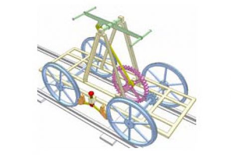 [Mô phỏng cơ cấu cơ khí] Xe ray lắc tay Lắc đòn kép màu lục cho xe chạy nhờ cơ cấu 4 khâu bản lề và bánh răng. Đổi chiều xe