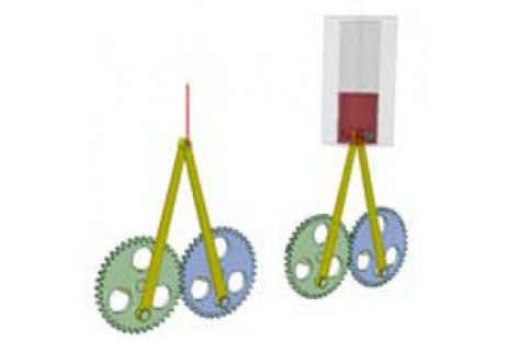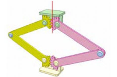 [Mô phỏng cơ cấu cơ khí] Bánh răng và cơ cấu thanh 2 Tâm khớp quay giữa thanh vàng và thanh hồng di chuyển theo đường gần thẳng. Bán kính bánh