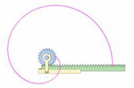 [Mô phỏng cơ cấu cơ khí] Cơ cấu bánh răng thanh răng 3 Một điểm trên đường lăn của thanh răng vạch ra đường thân khai. Để xem các video