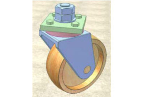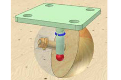Bánh xe tự hướng, một biến thể của “Bánh xe tự hướng 1” với bánh xe hình cầu. Có hai khớp quay: một thẳng đứng giữa đế màu lục và