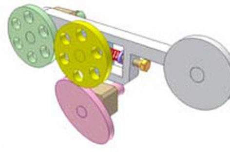 [Mô phỏng cơ cấu cơ khí] Bộ truyền bánh ma sát 10 Bộ truyền bánh ma sát: tời ma sát. Khâu dẫn: trục màu lục. Khâu bị dẫn: tang màu