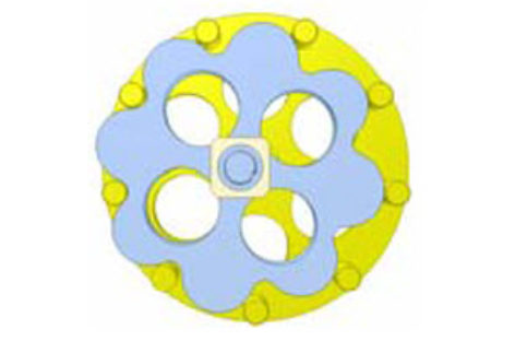 Bánh răng xanh quay gián đoạn. Trong 1 vòng quay của bánh chốt, bánh xanh quay 1 vòng rồi dừng. Dễ dàng chỉnh thời gian quay dừng bằng cách thêm
