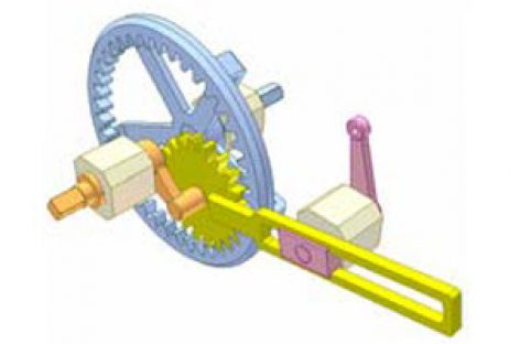 [Mô phỏng cơ cấu cơ khí] Bộ truyền hành tinh 3b Tay quay màu cam quay đều (khâu dẫn) là cần của bộ truyền hành tinh. Bánh răng vàng hành