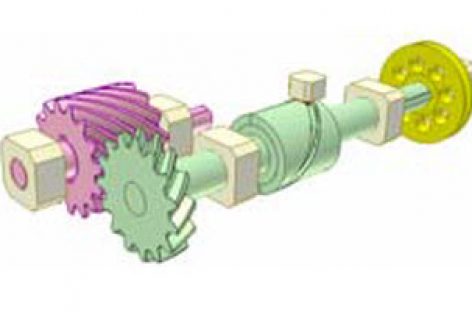 [Mô phỏng cơ cấu cơ khí] Cam thùng và bánh răng xoắn 1 Trục vào mang bánh răng lục và cam thùng, vừa quay đều vừa đi lại dọc trục. Trục